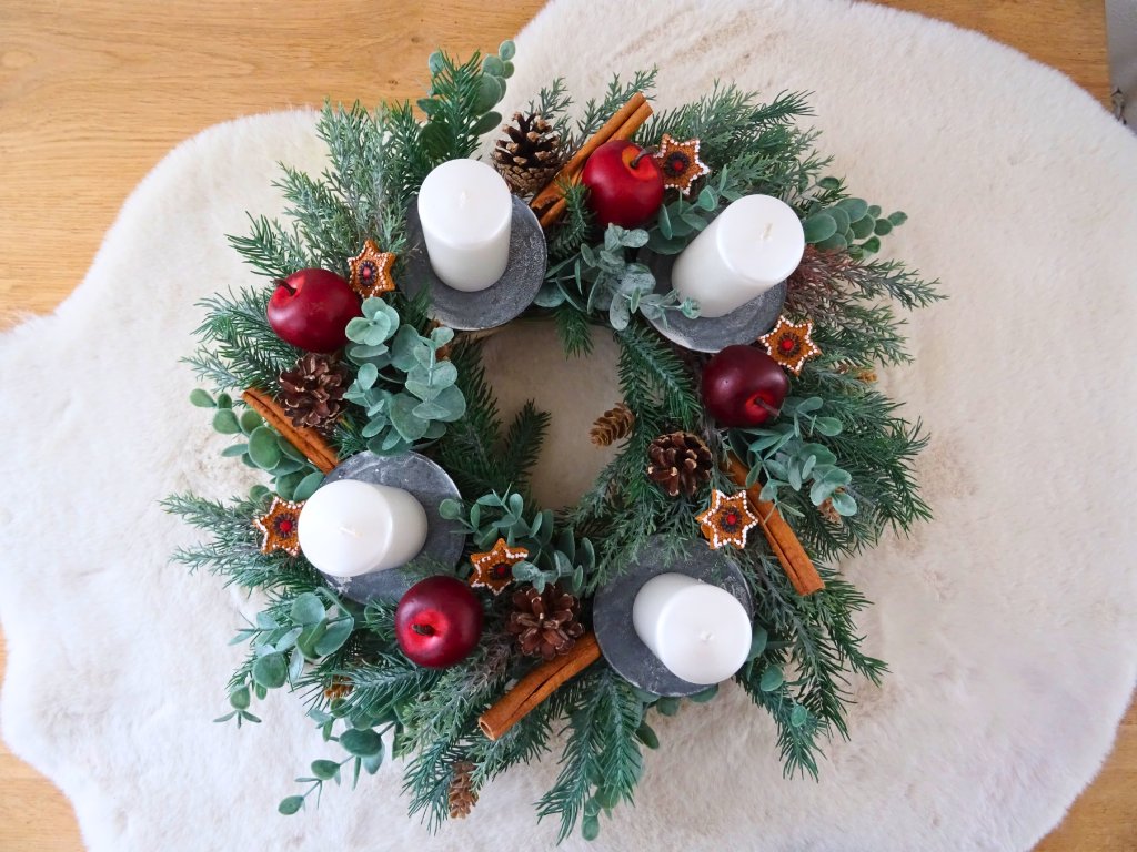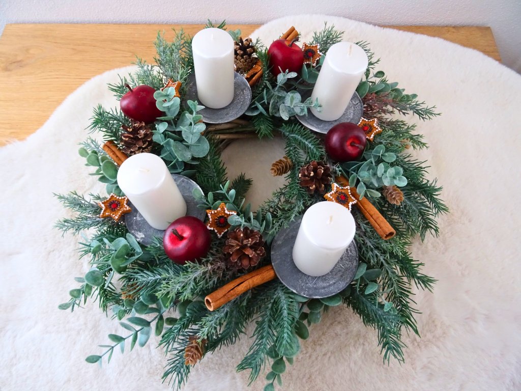 Použité jehličí je umělé - REÁLNÝ VZHLED. Svícen vydrží krásný po mnoho let.