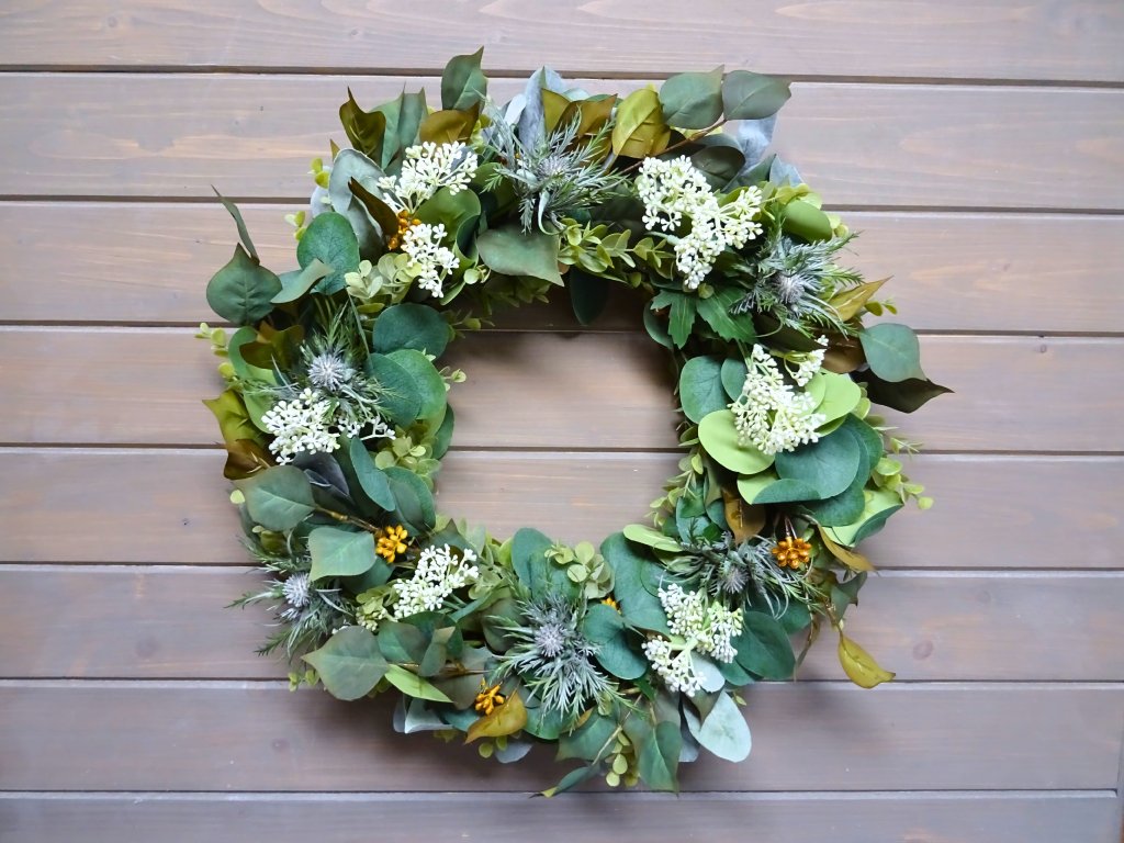 Použité rostliny jsou umělé, pečlivě vybírané, jako živé. Věnec vydrží krásný po mnoho let.