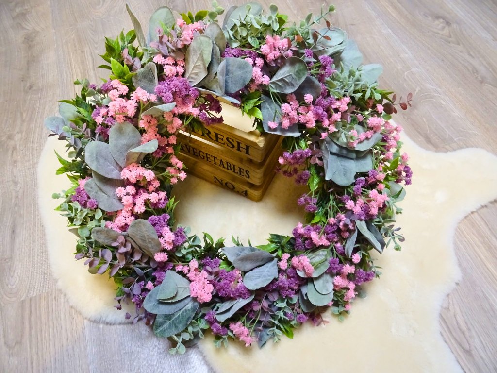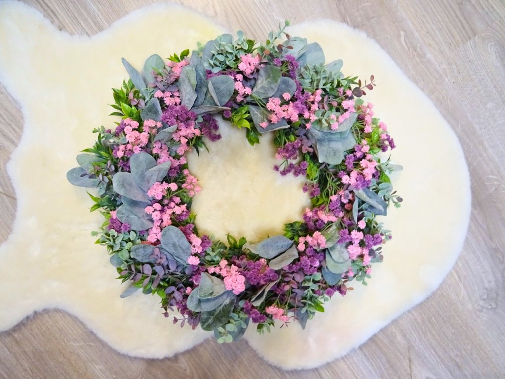 Použité rostliny jsou umělé, pečlivě vybírané, jako živé. Věnec vydrží krásný po mnoho let.