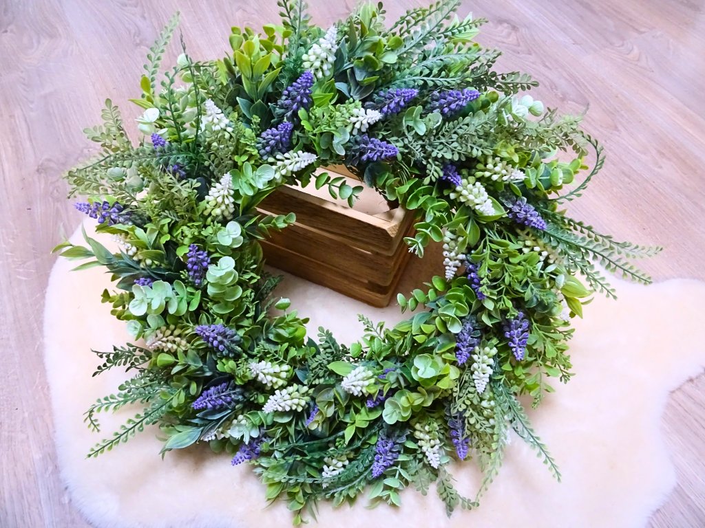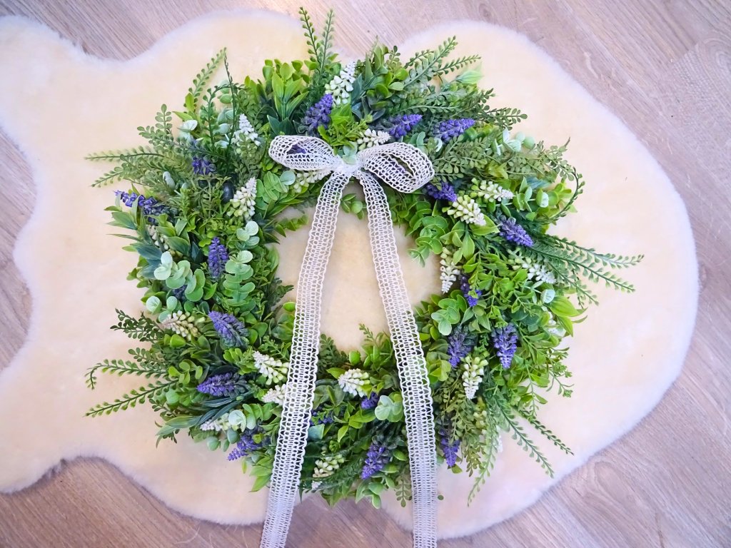 Použité rostliny jsou umělé, pečlivě vybírané, jako živé. Věnec vydrží krásný po mnoho let.