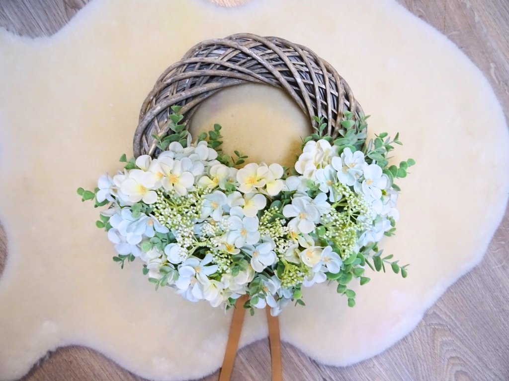 Použité rostliny jsou umělé, pečlivě vybírané, jako živé. Věnec vydrží krásný po mnoho let.