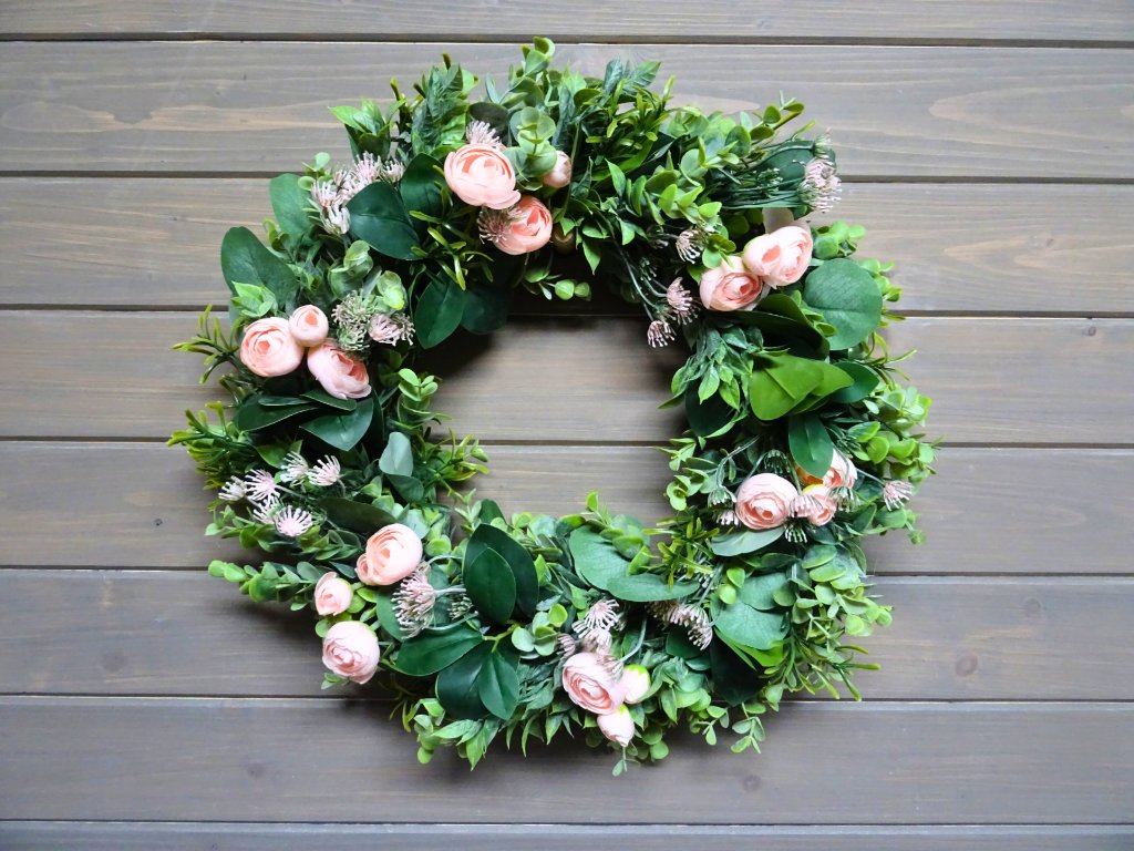Použité rostliny jsou umělé, pečlivě vybírané, jako živé. Věnec vydrží krásný po mnoho let.