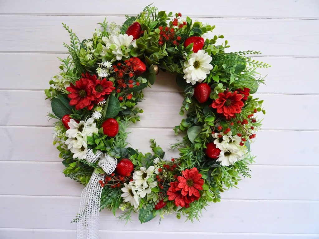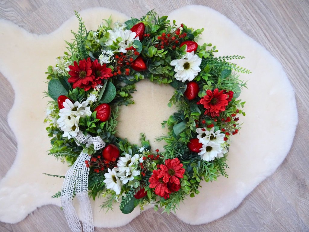 Použité rostliny jsou umělé, pečlivě vybírané, jako živé. Věnec vydrží krásný po mnoho let.