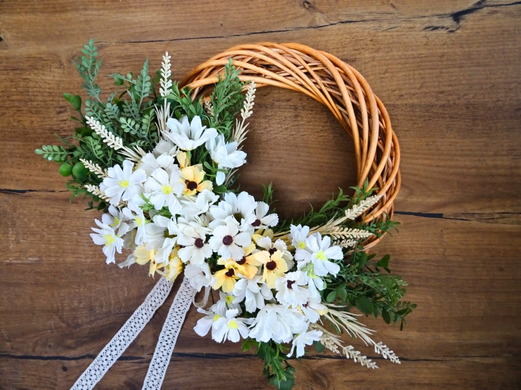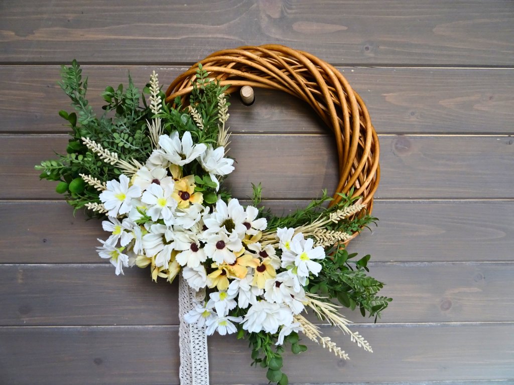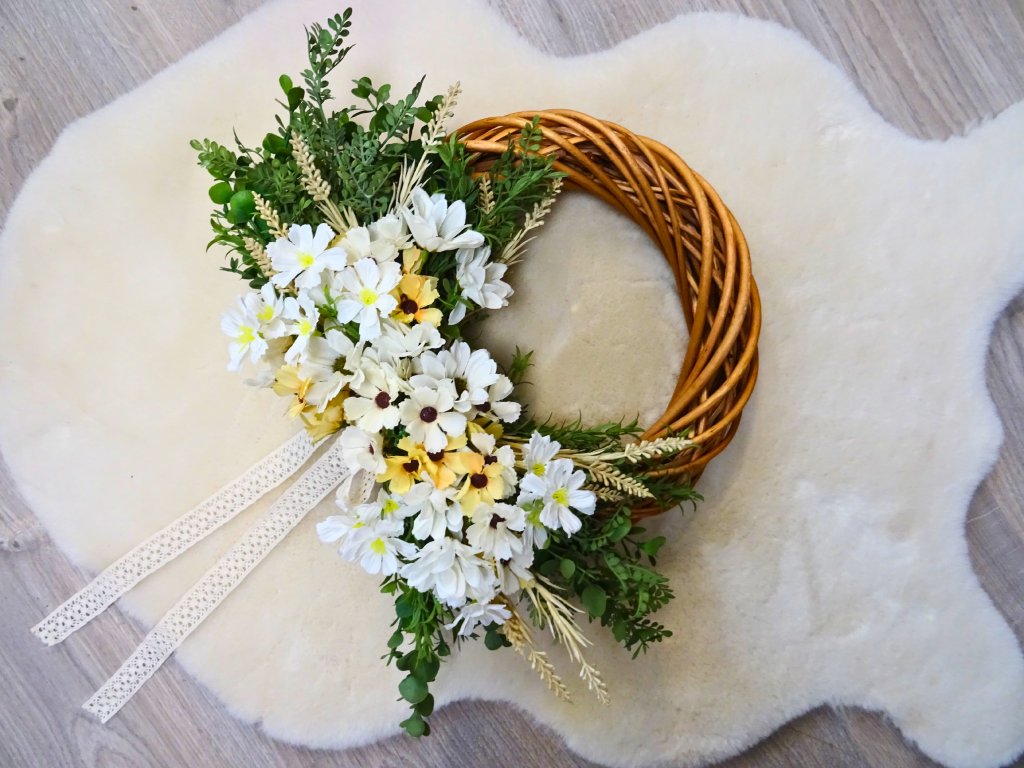 Použité rostliny jsou umělé, pečlivě vybírané, jako živé. Věnec vydrží krásný po mnoho let.