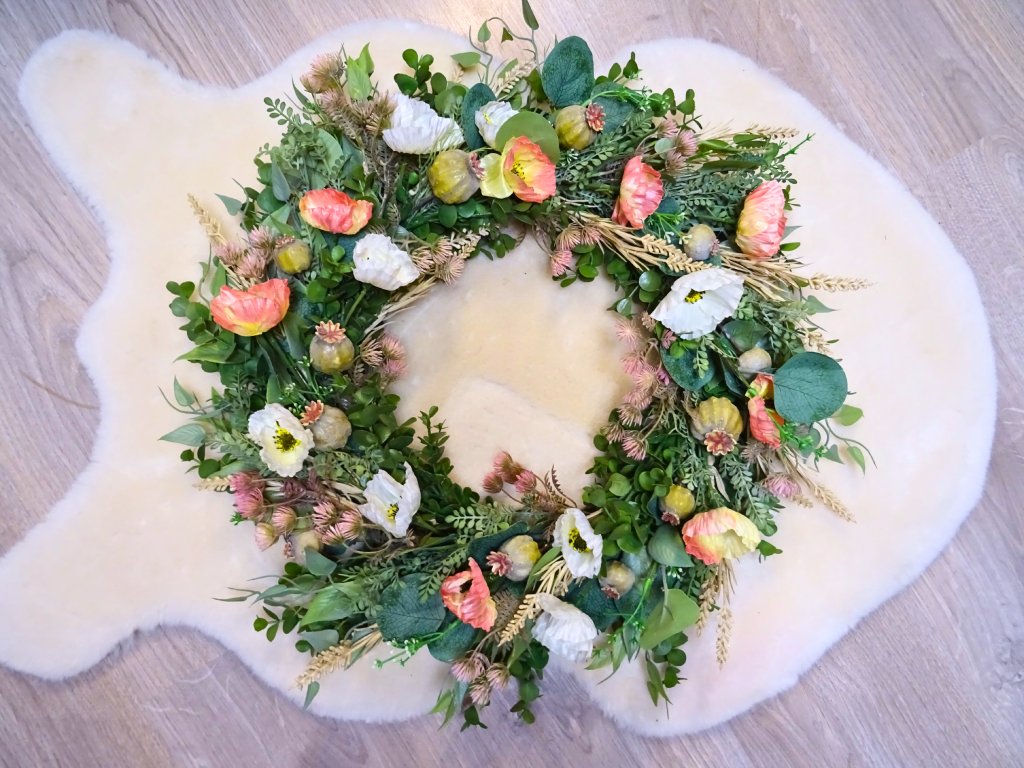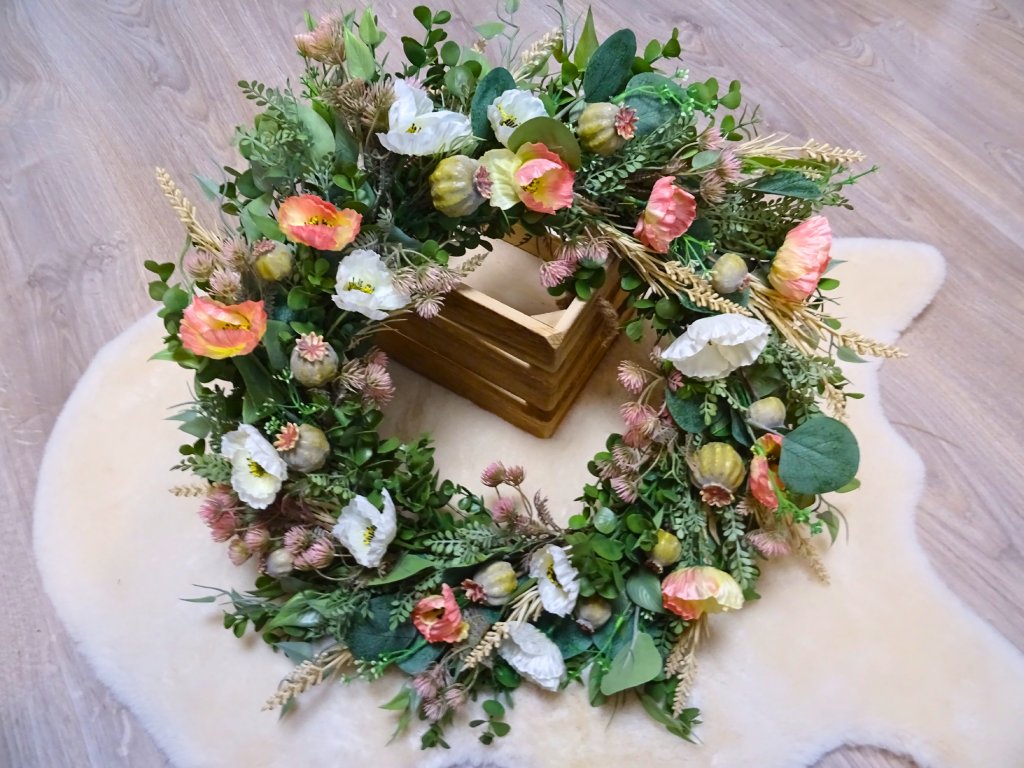 Letní věnec luční s máky